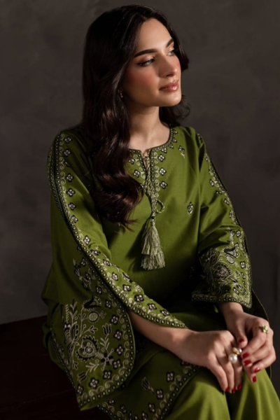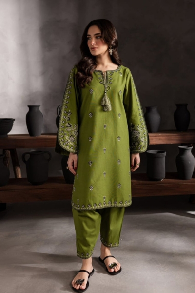 Heer Ready to Wear Embroidered 2-Piece Dress – olive green