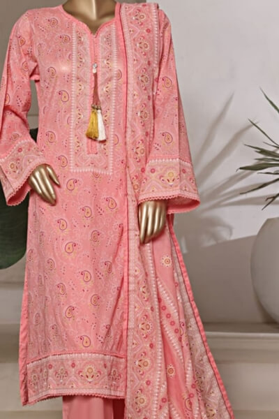 Made from premium quality lawn fabric, this 3-piece women’s suit is lightweight, breathable, and perfect for everyday wear. The soft mint freshness paired with delicate pink tones creates a graceful and feminine look — ideal for casual outings, daytime events, and summer gatherings.