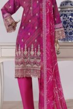 Refresh your summer wardrobe with this elegant embroidered lawn suit crafted in vibrant seasonal colors. Featuring a soft, breathable lawn shirt with intricate embroidery and a lightweight chiffon dupatta, this outfit delivers the perfect blend of comfort and sophistication.